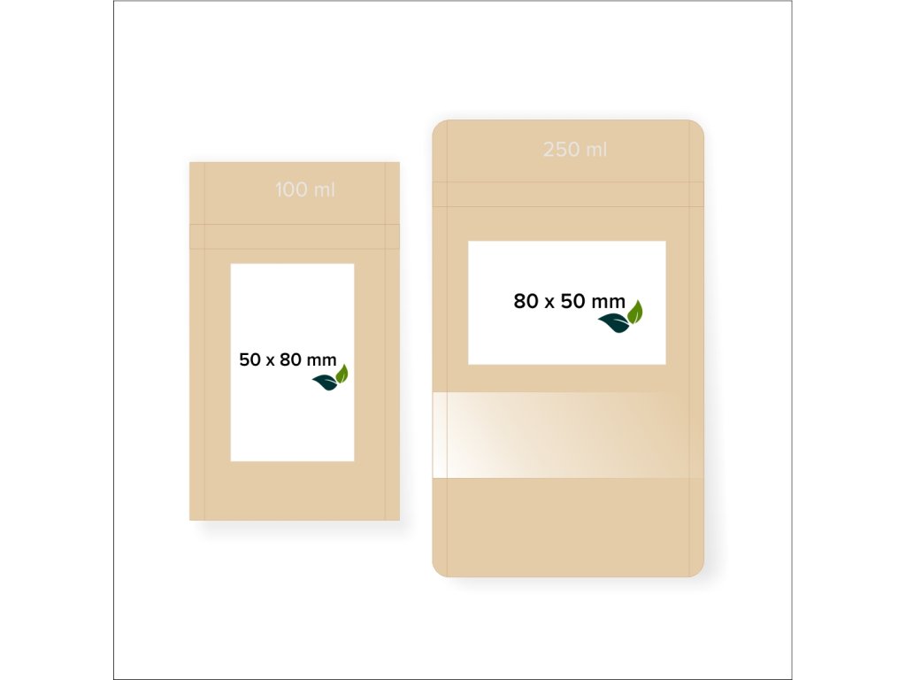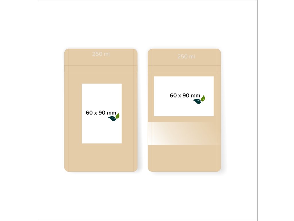 - Papírová etiketa s vlastním barevným potiskem vhodná na sáčky Doypack