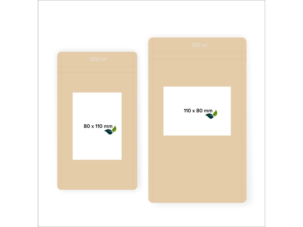 - Papírová etiketa s vlastním černobílým potiskem vhodná na sáčky Doypack
